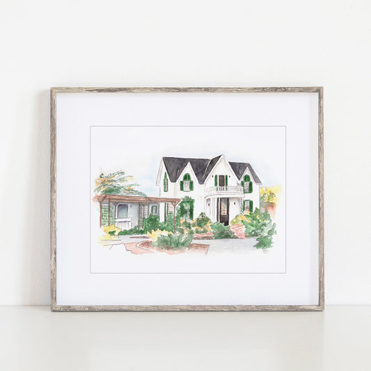 Hempstead House Watercolor Art Print, Sands Point, New York