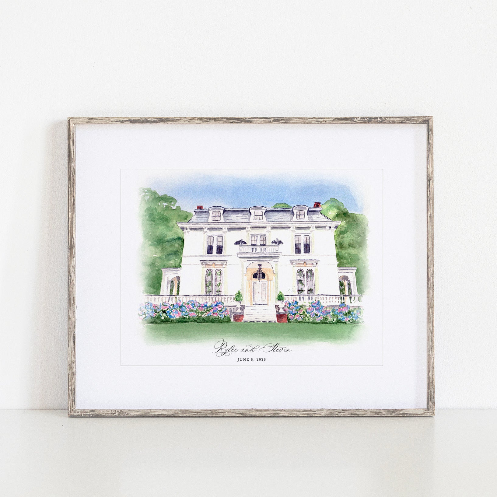 This is an art print of our hand-painted watercolor portrait of A Private Estate Art Print in Germantown, New York.