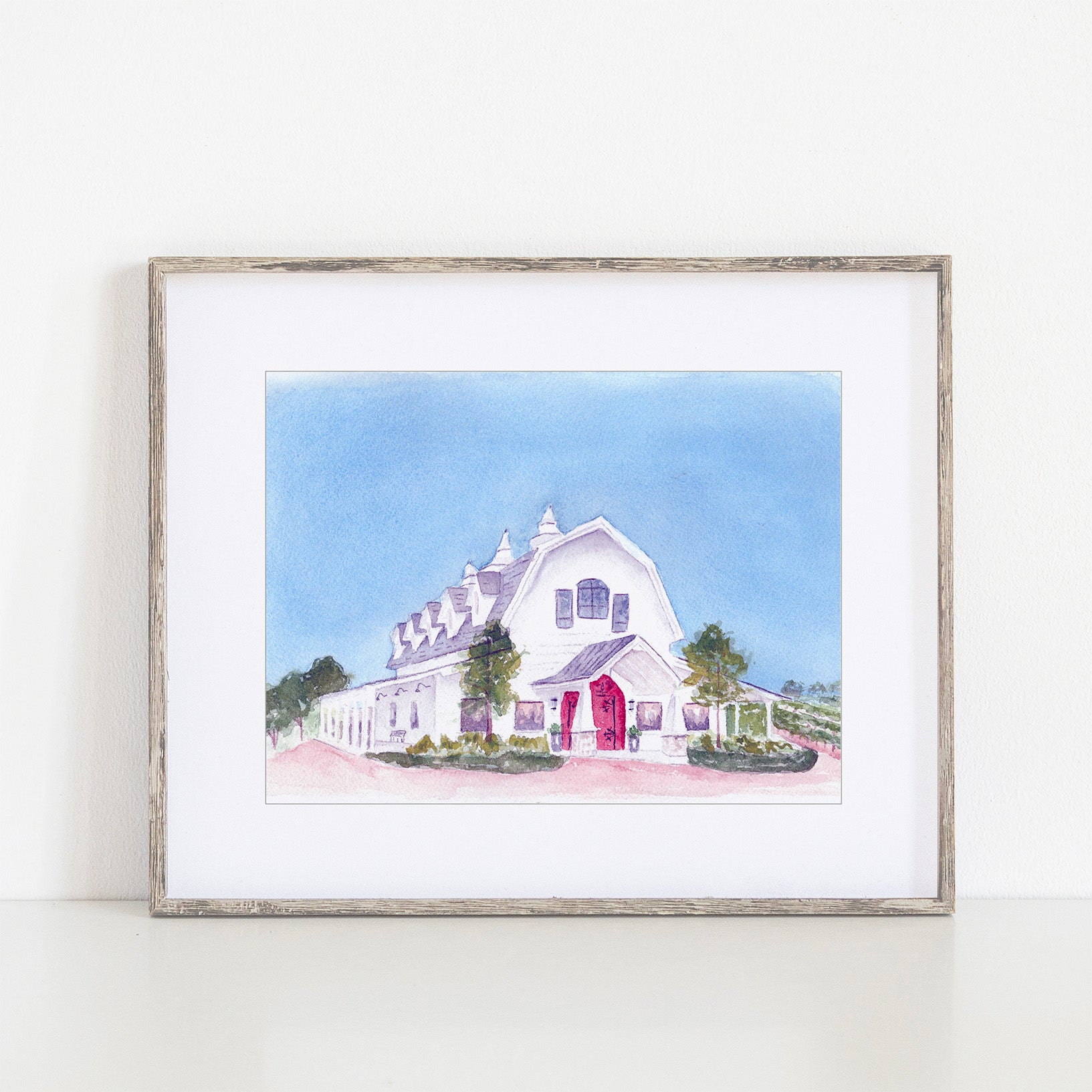 This is an art print of our hand-painted watercolor portrait of Ashery Lane Farm, in Mayer, Minnesota