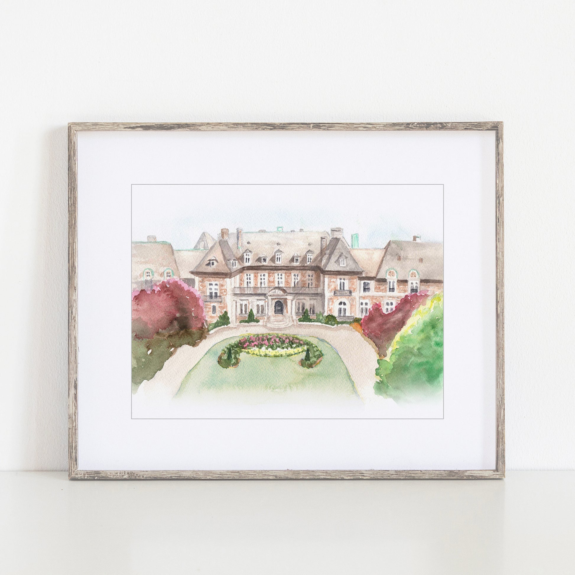 This is an art print of our hand-painted watercolor portrait of Aldrich Mansion in Warwick, Rhode Island