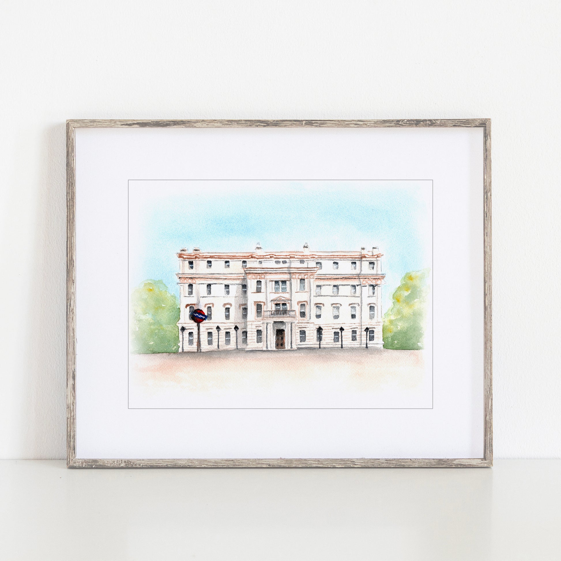 This is an art print of our hand-painted watercolor portrait of Lanesboro Hotel in London