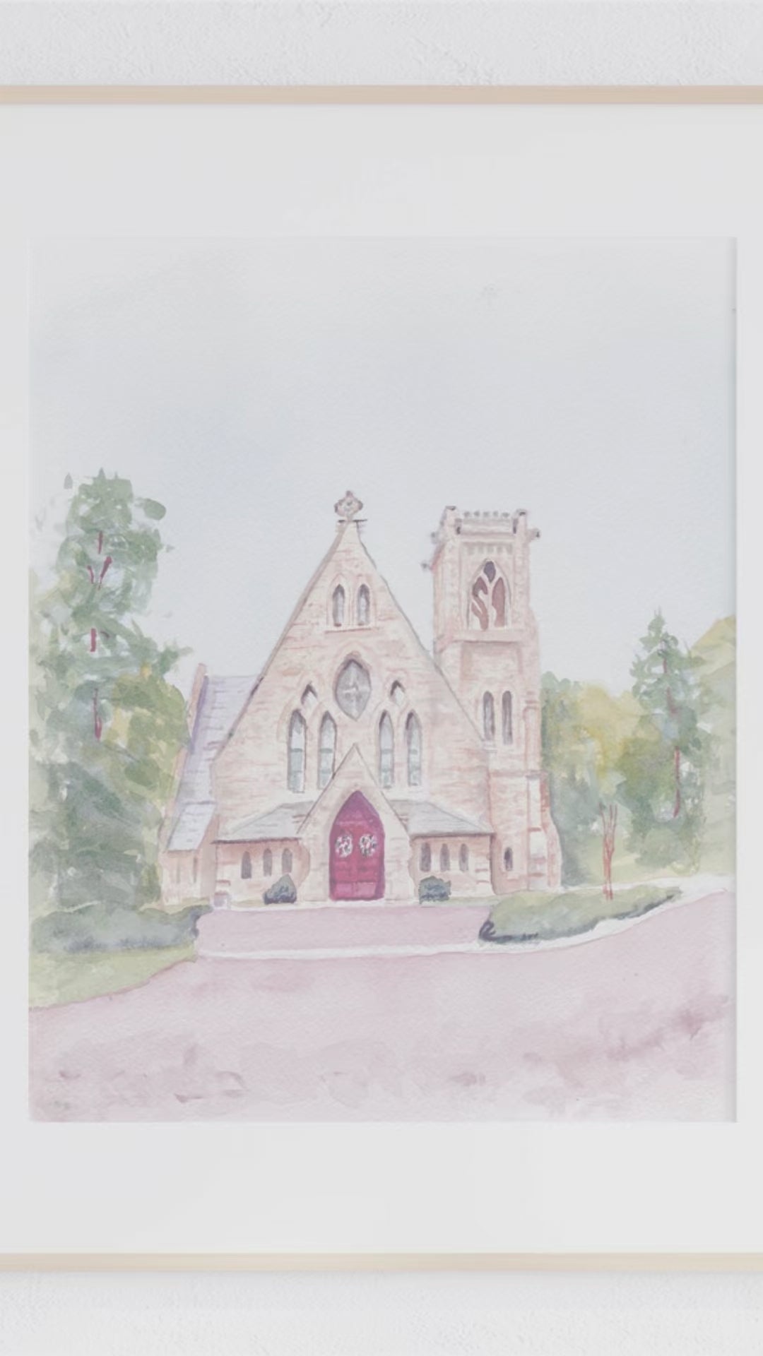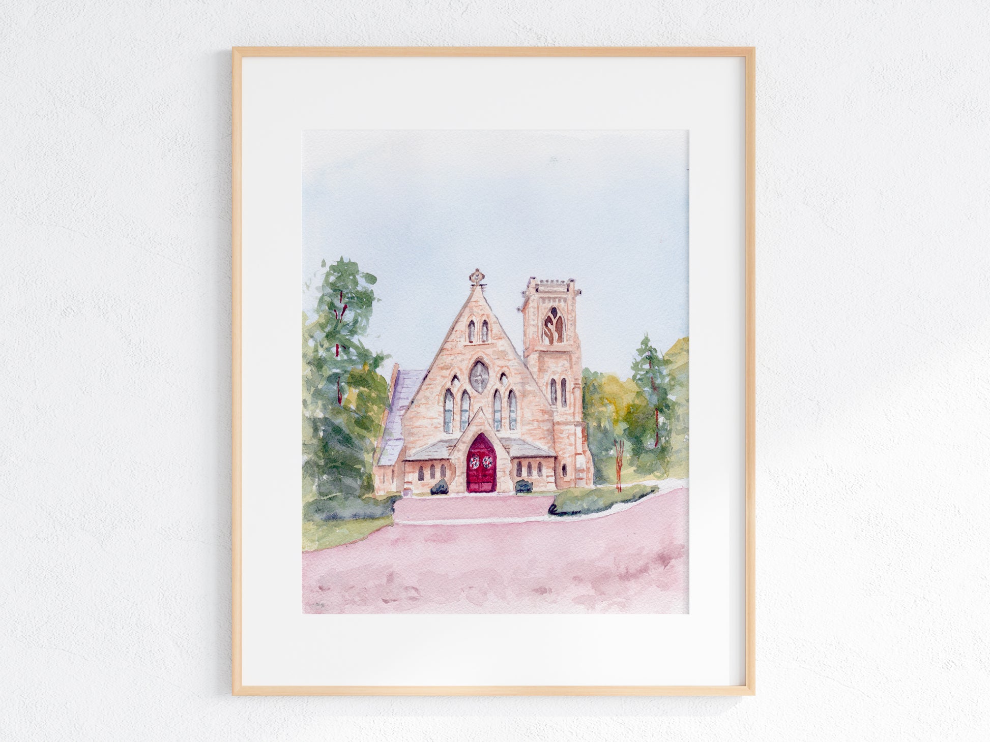 This is an art print of our hand-painted watercolor portrait of The UVA Chapel in Charlottesville, Virginia