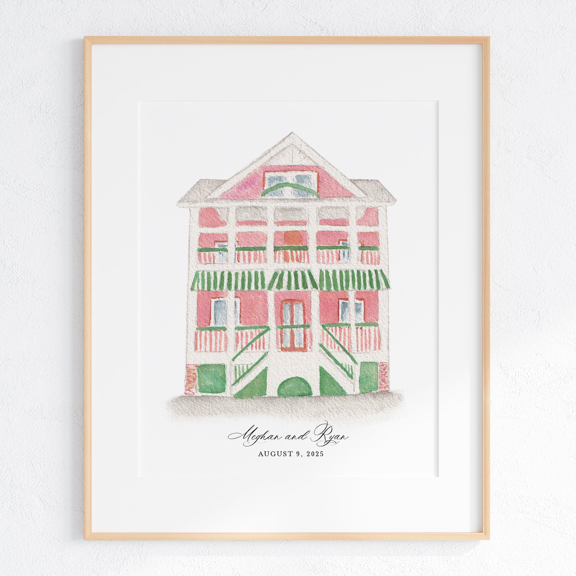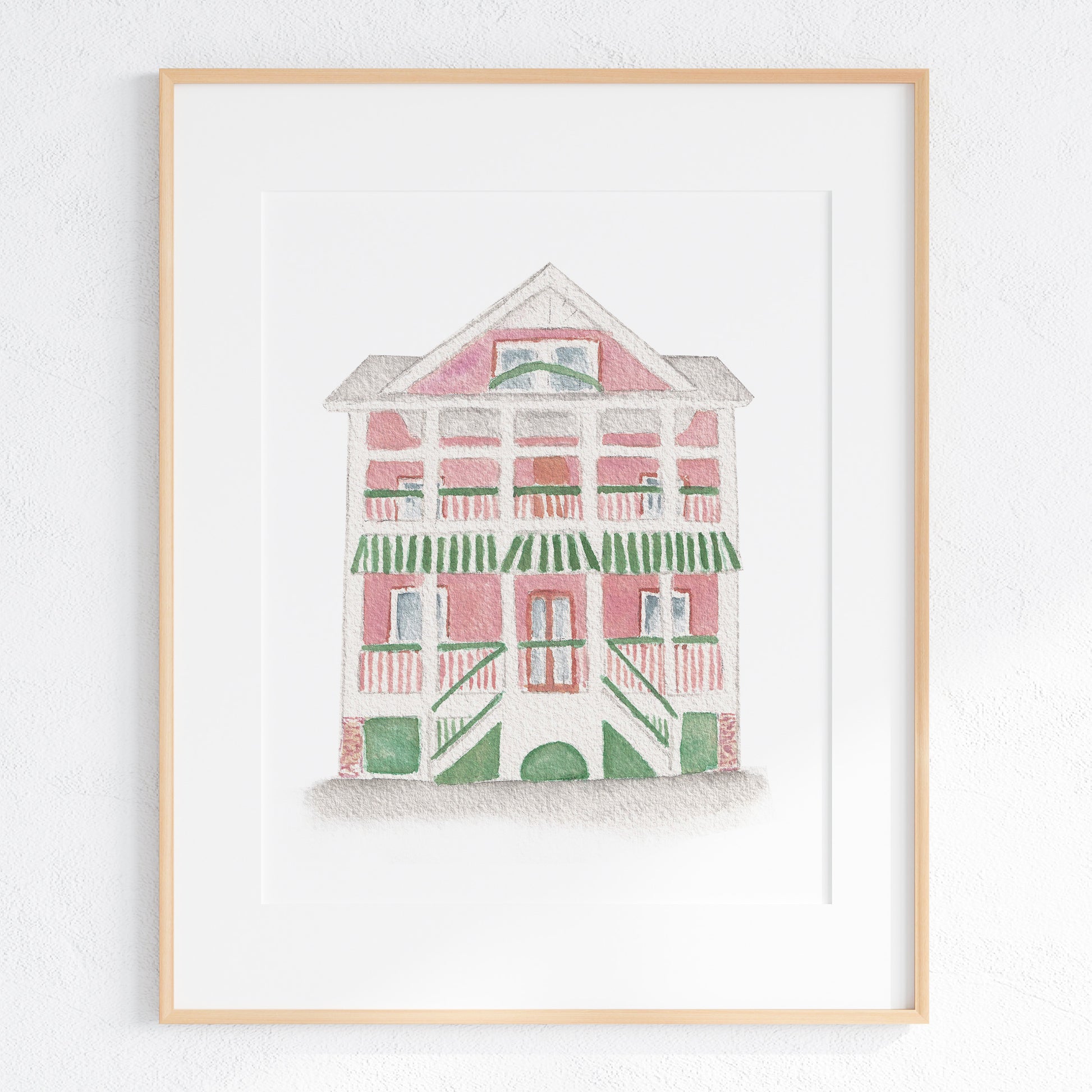 This is an art print of our hand-painted watercolor portrait of The Beaufort Inn in Beaufort, South Carolina