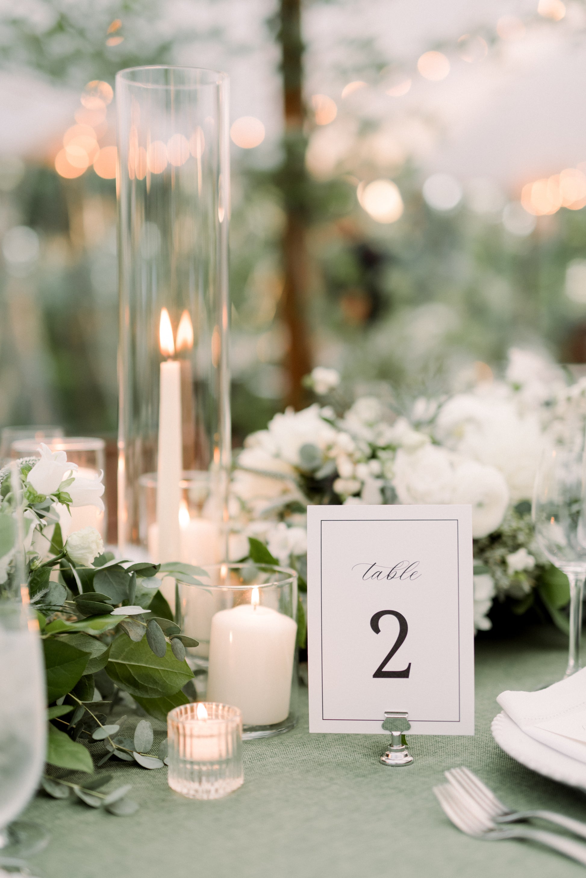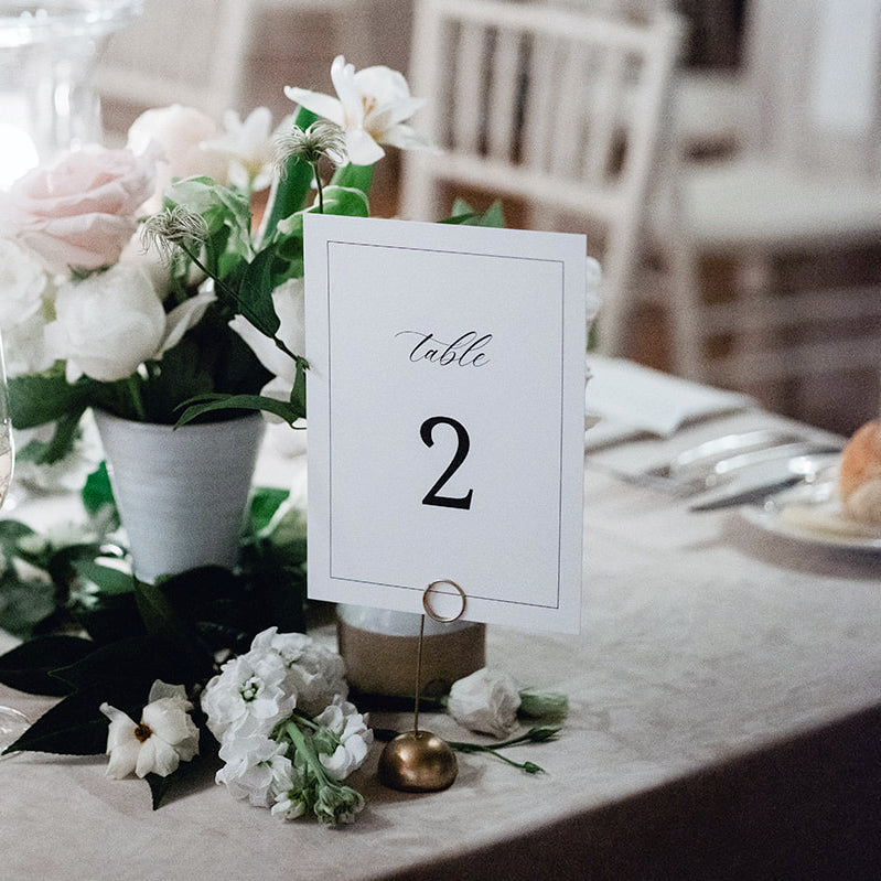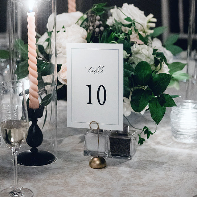 Size: 5x7" flat, single-sided table numbers with straight edges, on our Signature White or Soft Ivory Eggshell 120# stock.