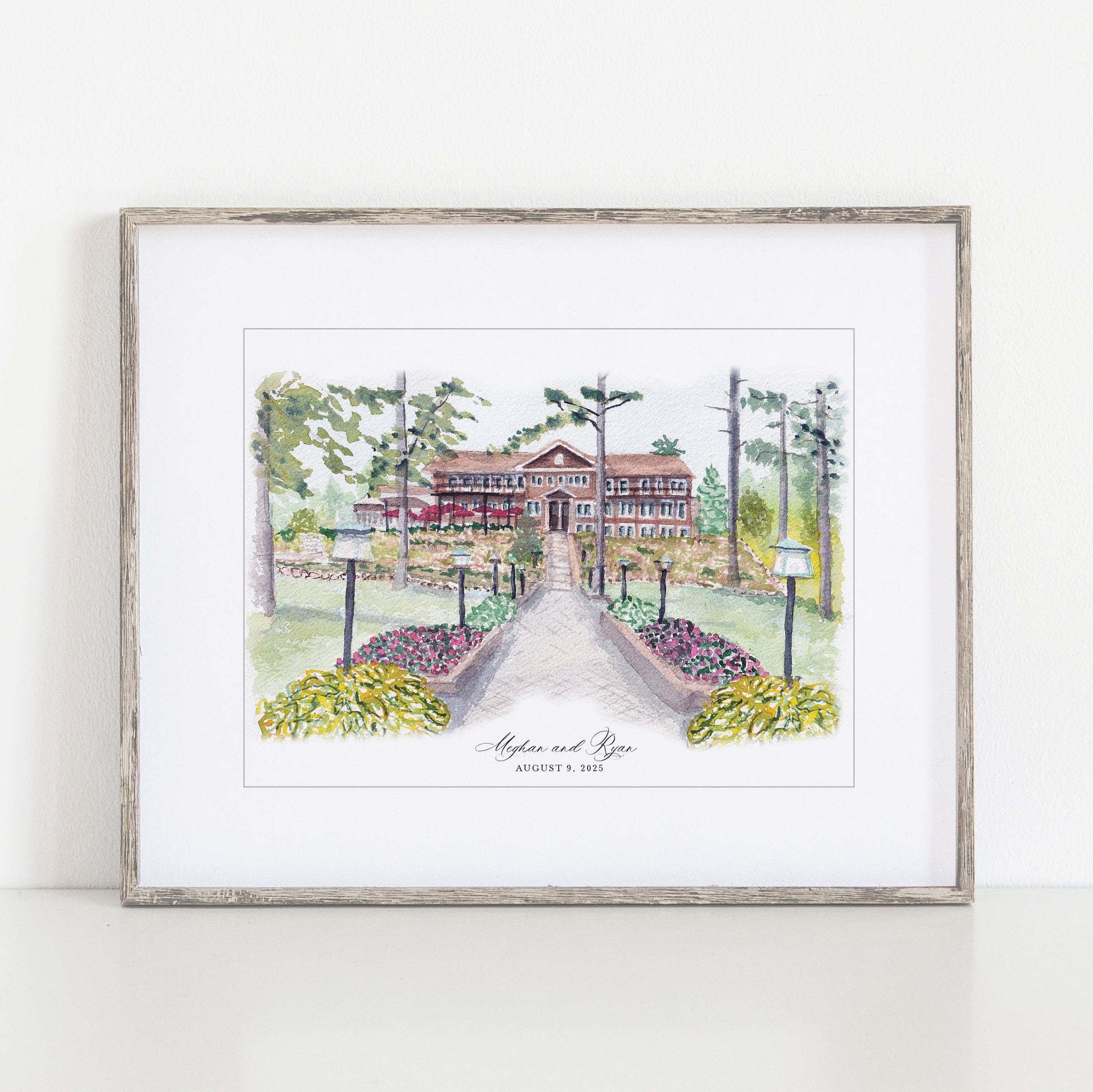 This is an art print of our hand-painted watercolor portrait of Grandview Lodge Watercolor Art Print in Nisswa, Minnesota.