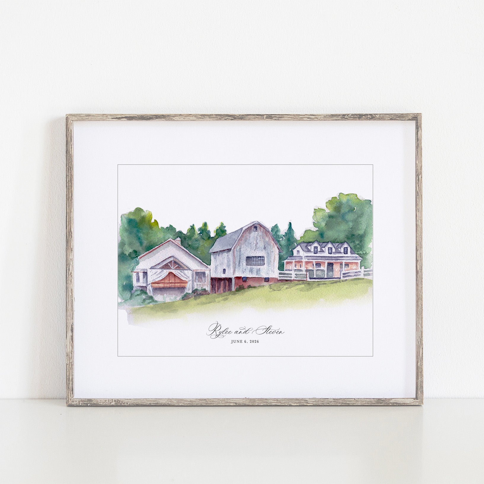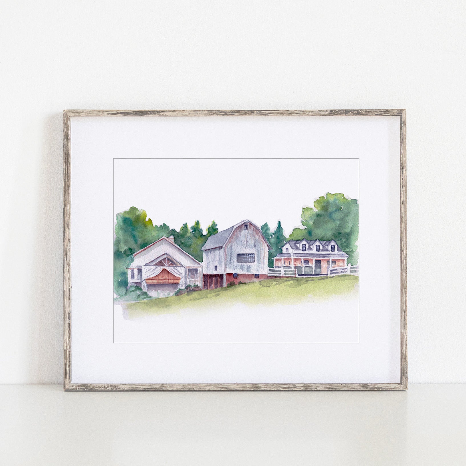 This is an art print of our hand-painted watercolor portrait of the Legacy Hill Farm in Welch, Minnesota