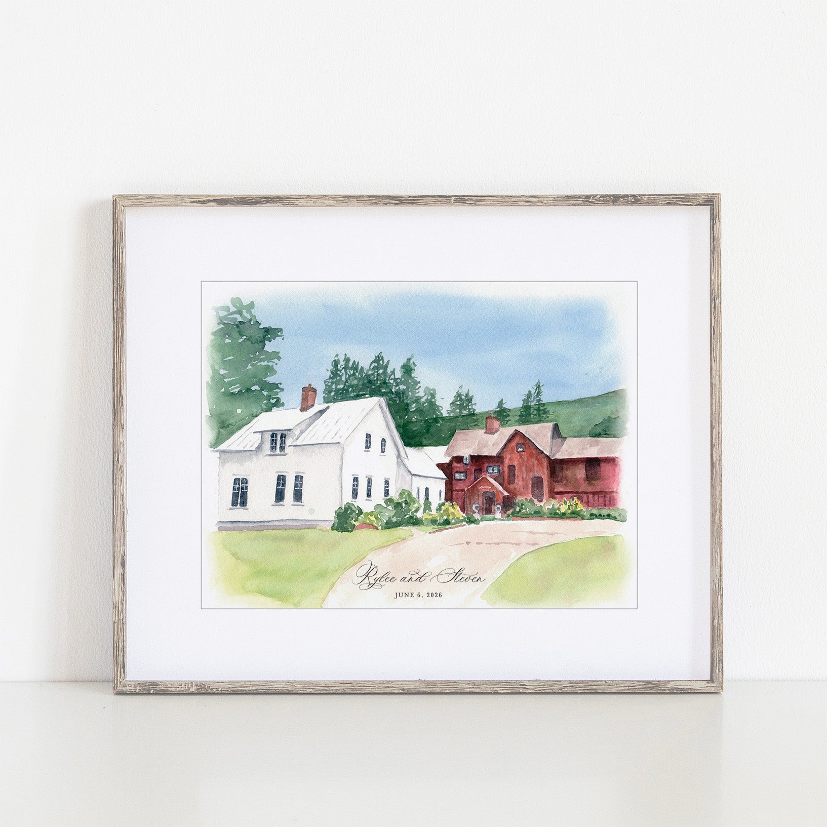 This is an art print of our hand-painted watercolor portrait of the Mad River Barn in Waitsfield, Vermont