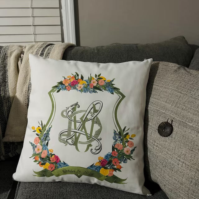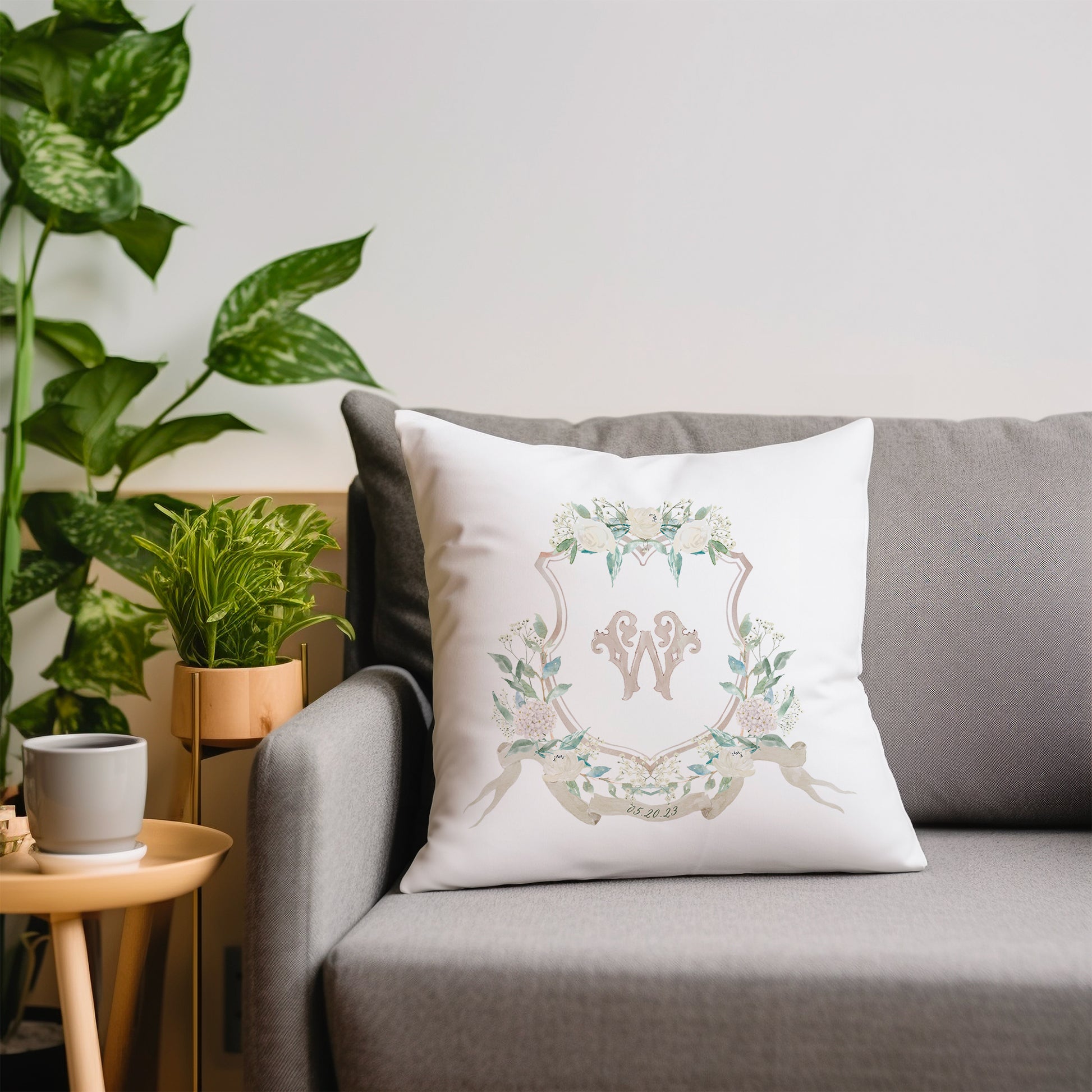 Watercolor Monogram Crest Throw Pillow Cover 18x18" - Cover Only