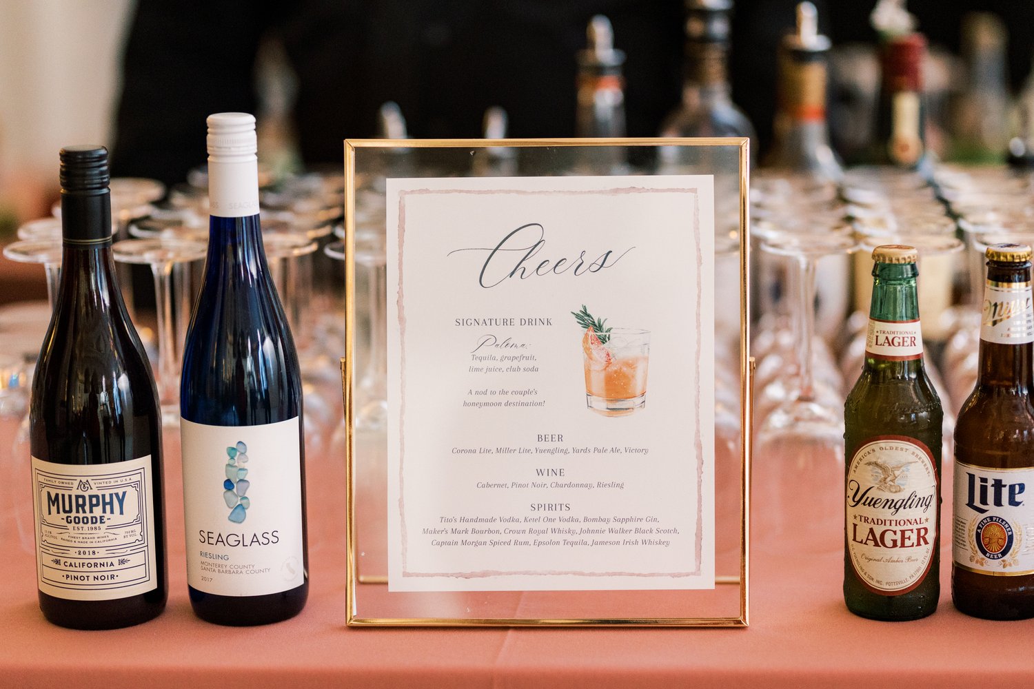 Printed customized Signature Drink Sign, using watercolor cocktail art that we have painted. We can print as 5x7, 8x10, or 11x14"
