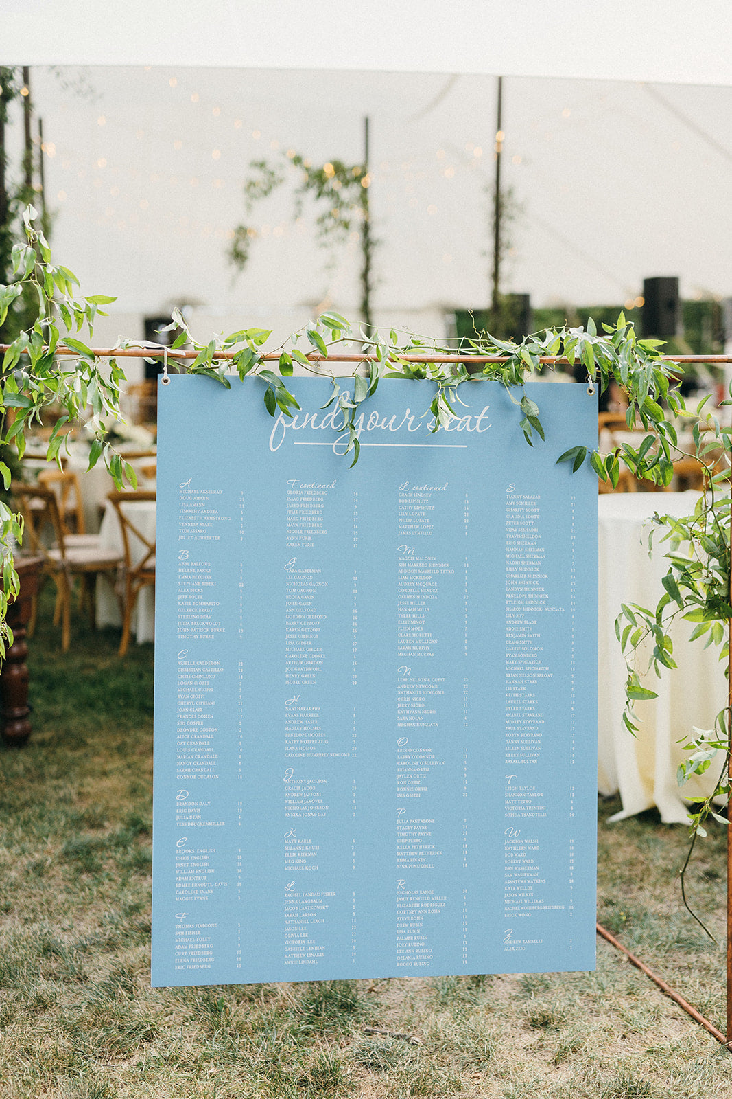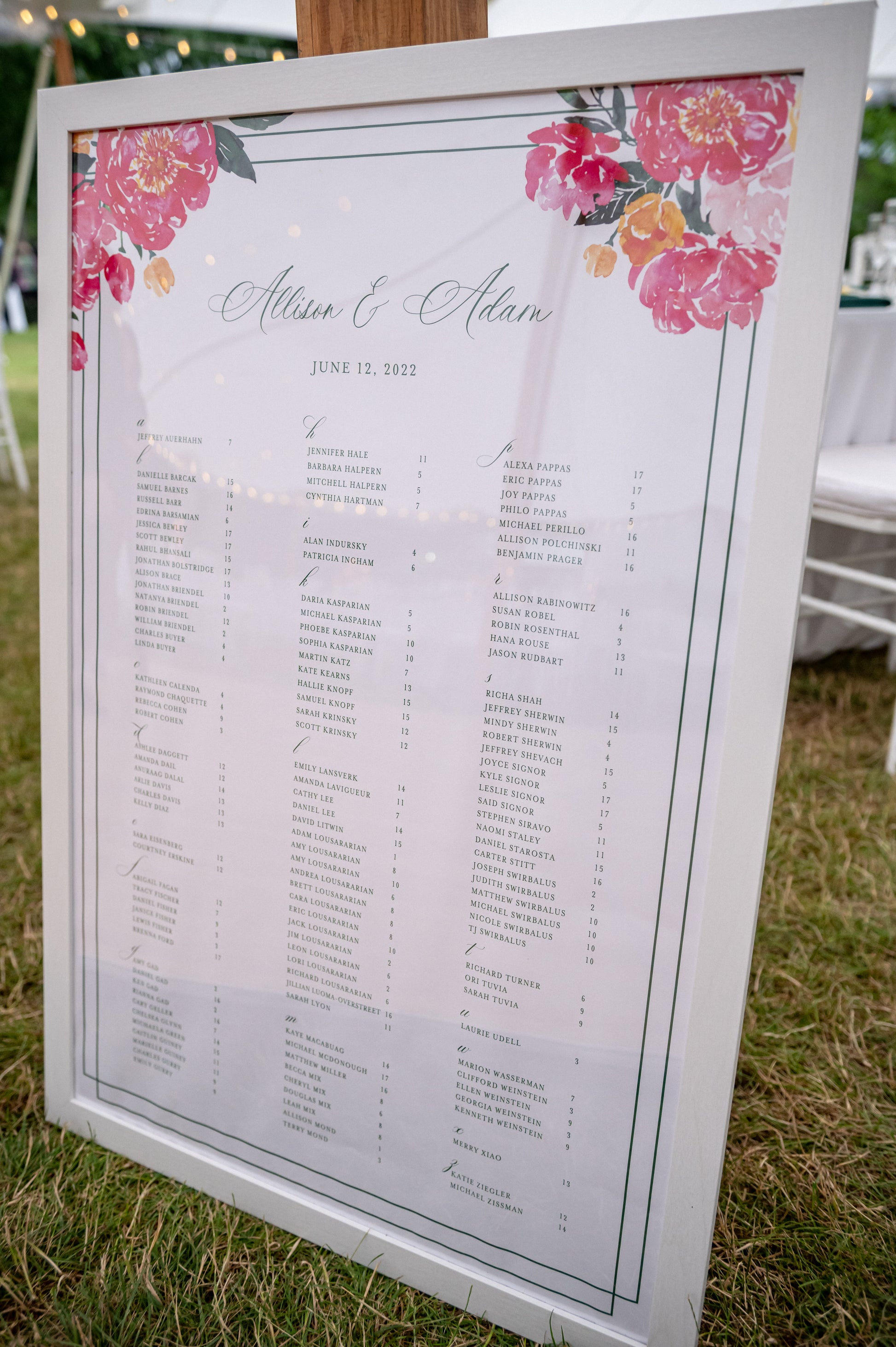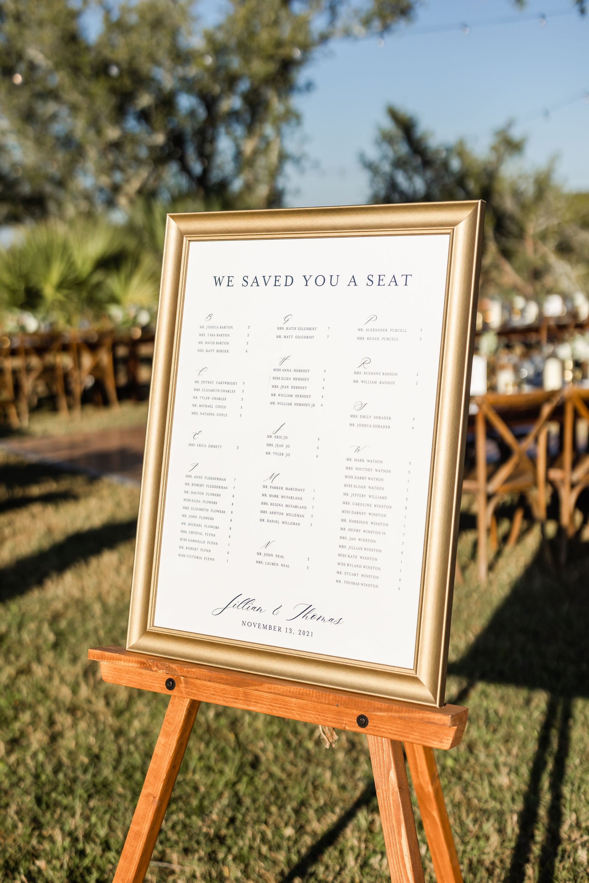 This is a custom made digital file of a Seating Chart poster, using your guests' names and table numbers to create an easy alphabetical chart for them to use to locate their seat.