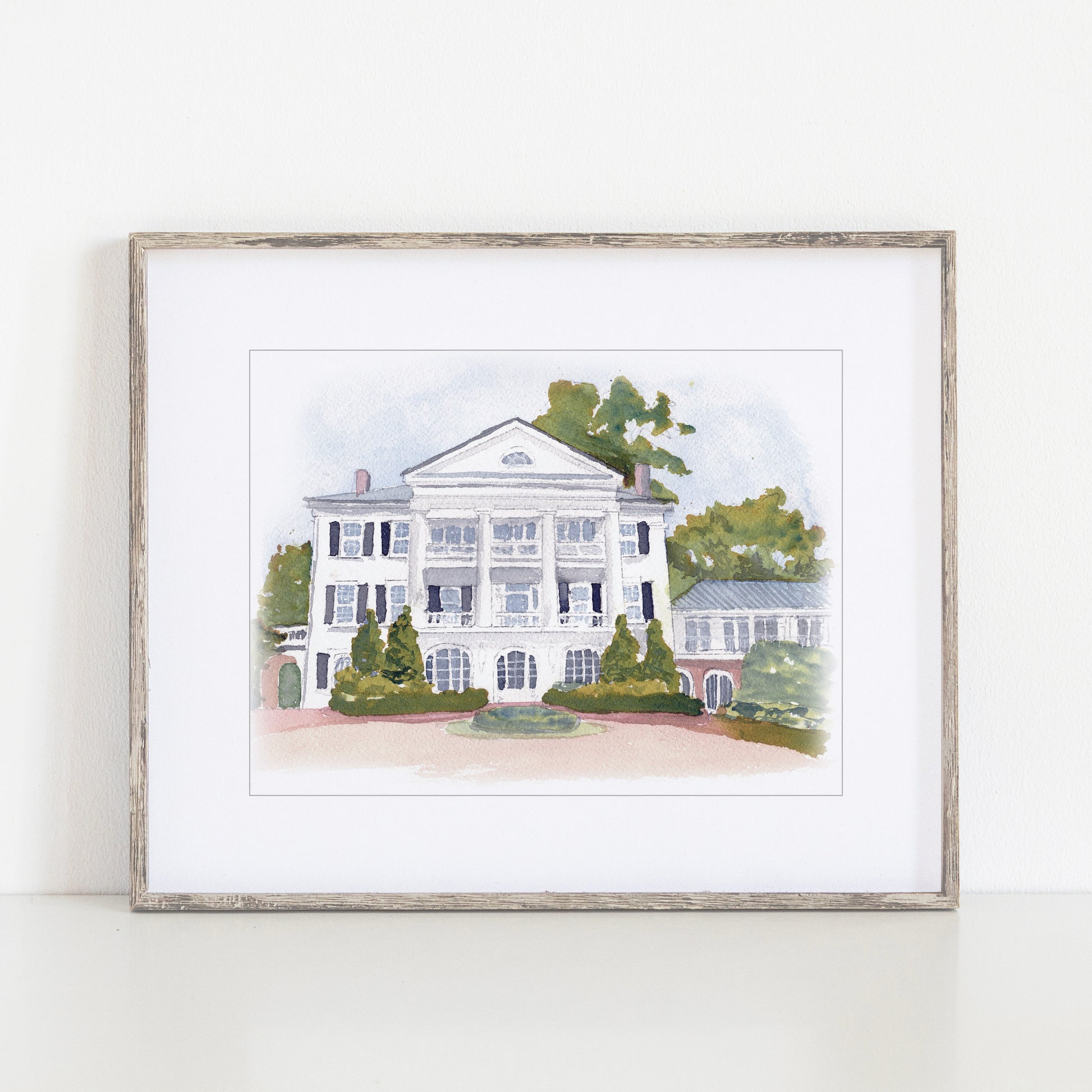 This is an art print of our hand-painted watercolor portrait of The Inn at Willow Grove, in Orange, Virginia