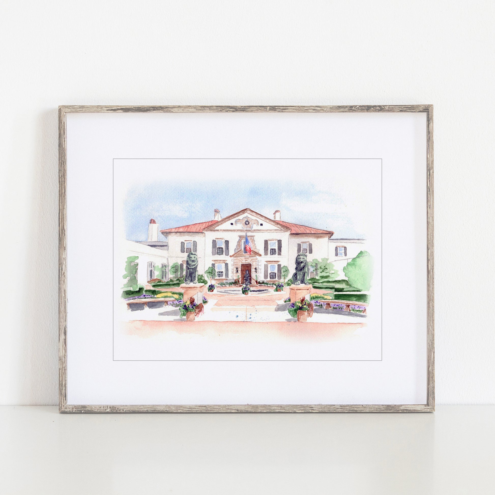 This is an art print of our hand-painted watercolor portrait of The War Memorial, Grosse Point, Michigan