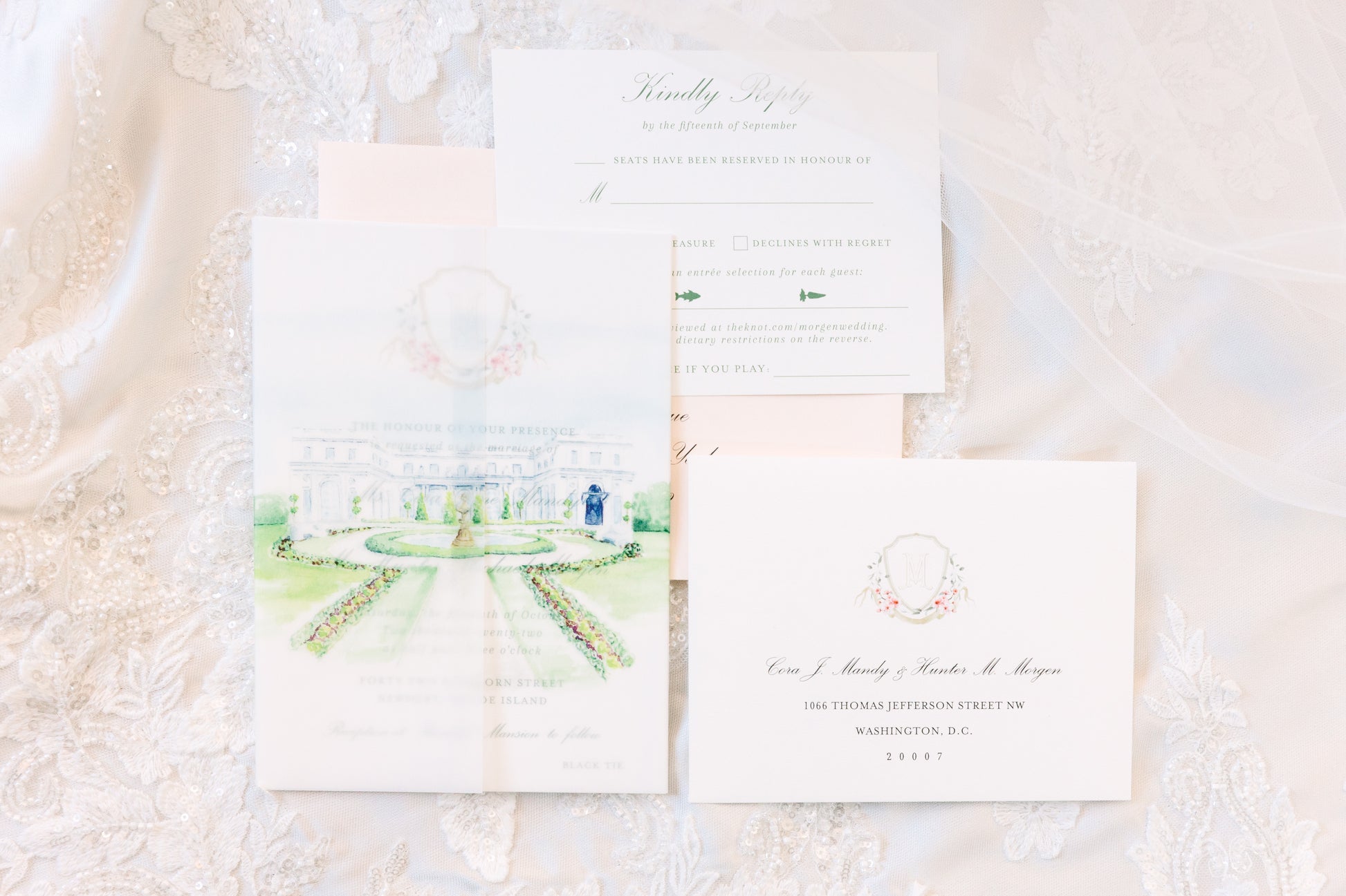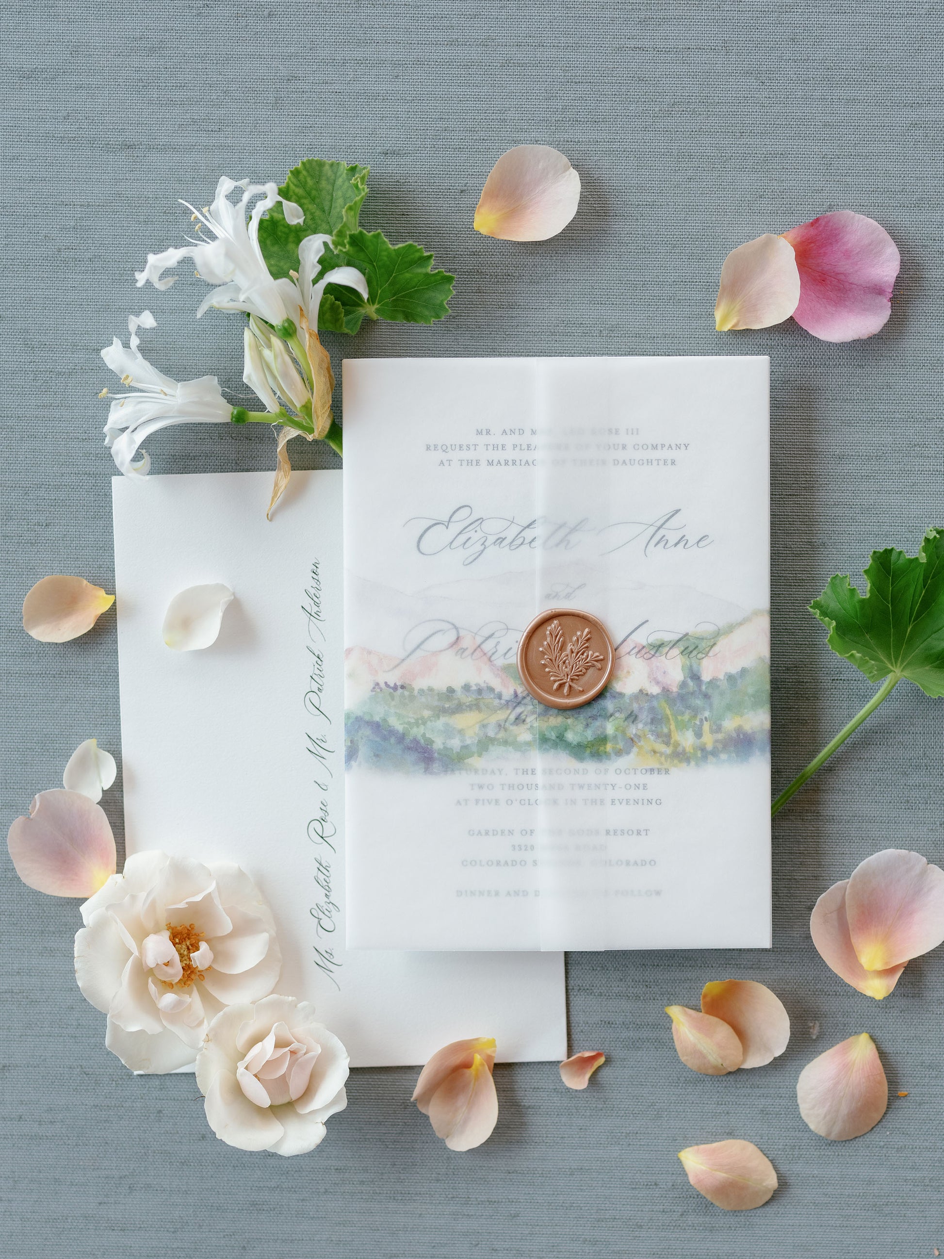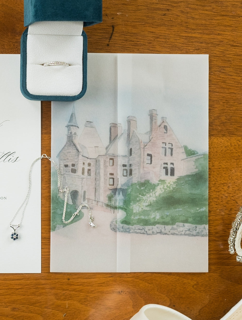 Get your guests excited about where they will be joining you for your wedding by highlighting your venue on beautiful watercolor vellum wraps.