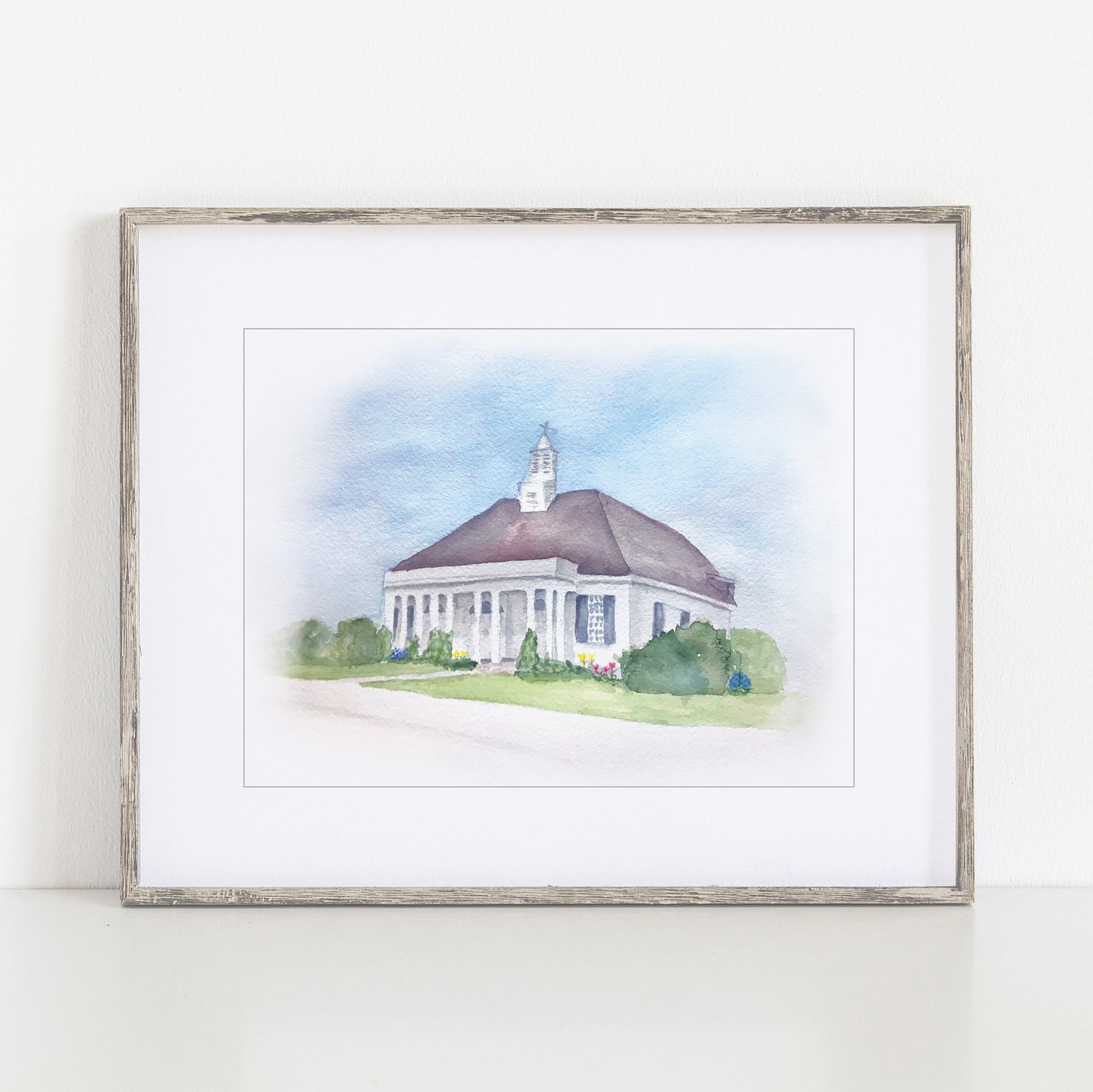 Watch Hill Chapel Watercolor Art Print, Newport Rhode Island