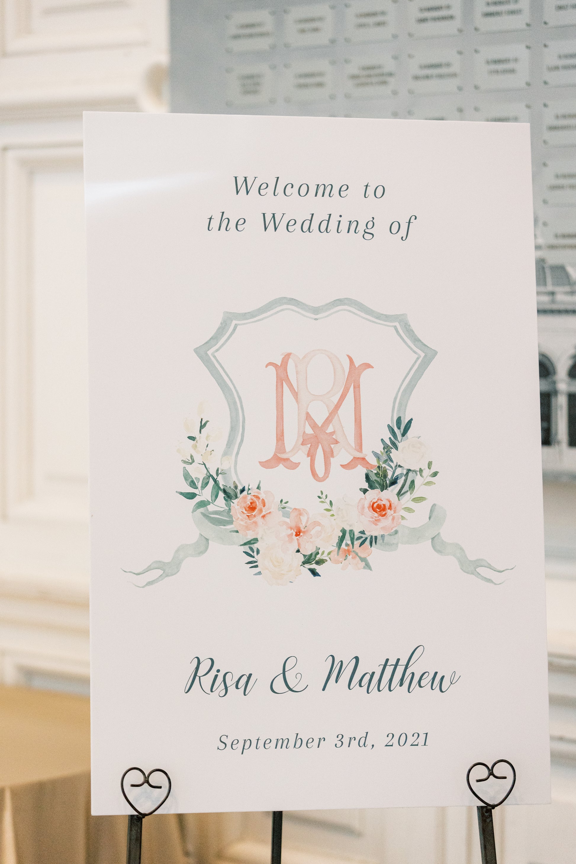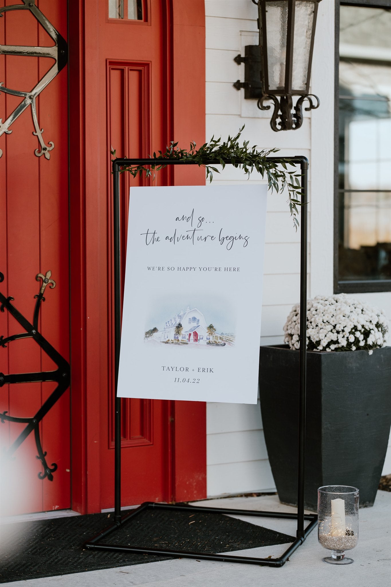 This is a custom digital file of a welcome sign, using your venue watercolor or monogram that we have already painted for your Save the Dates or Invitation Suites.
